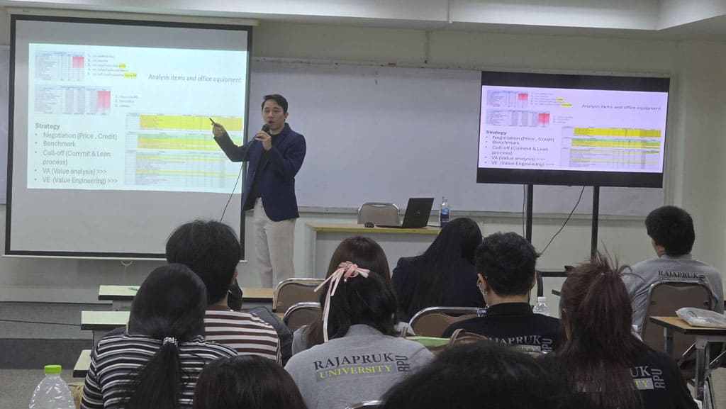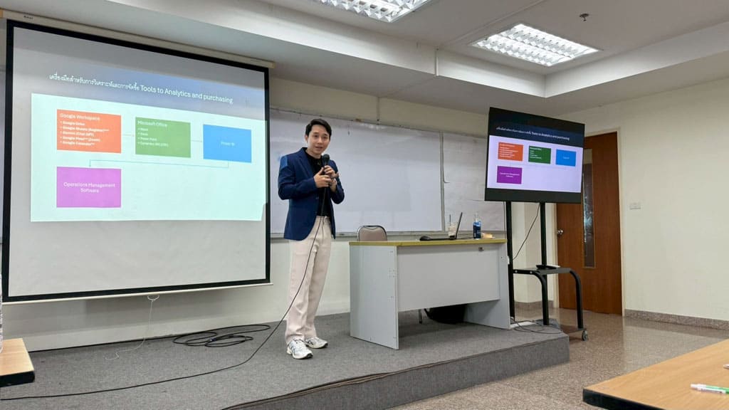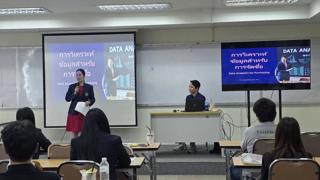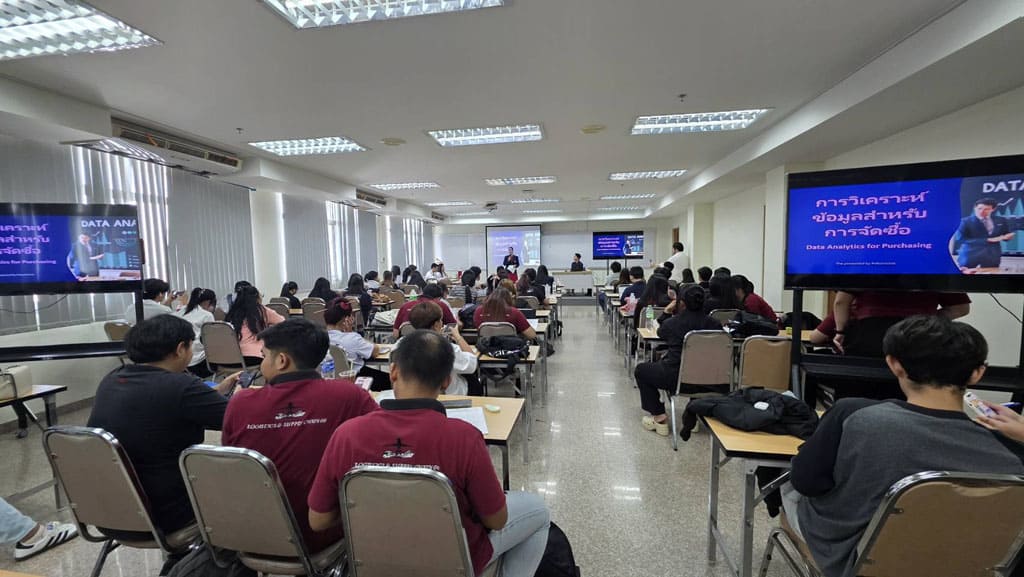 วันอาทิตย์ที่ 21 กันยายน 2568 สาขาวิชาการจัดการโลจิสติกส์และซัพพลายเชน จัดสัมมนาจากศิษย์เก่าเล่าเรื่องโลจิสติกส์ (Let’s talk logistics) ครั้งที่ 9 หัวข้อ“DATA ANALYTICS FOR PURCHASING”การวิเคราะห์ข้อมูลสำหรับการจัดซื้อ วิทยากร คุณปกรณ์ชัย เพิ่มทวีโชคชัย Senior Procurement Officer บริษัท ฟอร์ท เวนดิ้ง (เต่าบิน) โดยได้รับเกียรติจาก ผู้ช่วยศาสตราจารย์ ดร.อาภรณีน์ อินฟ้าแสง คณบดีคณะบริหารธุรกิจ กล่าวเปิดงาน