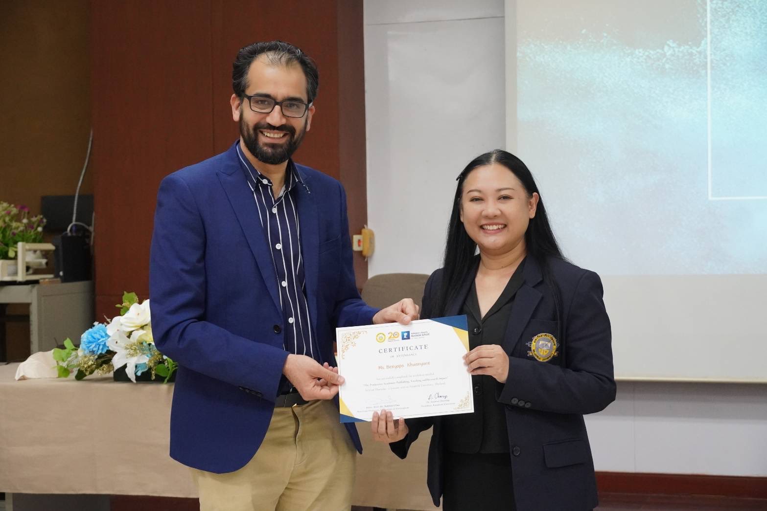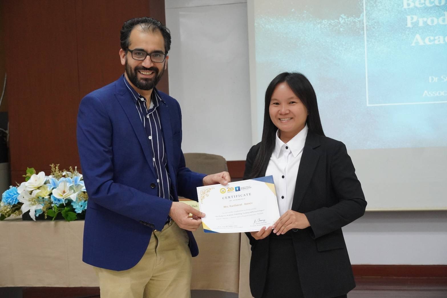 วันพฤหัสบดีที่ 22 มกราคม 2569 อ.ฤทัยรัตน์ อาเซนอฟ และ อ.เบญญาภา ขวัญยืน อาจารย์ประจำสาขาวิชาการจัดการโลจิสติกส์และซัพพลายเชน เข้าร่วมฝึกอบรมปฏิบัติการเรื่อง “The Productive Academic: Publishing, Teaching and Research Impact” จัดโดยมหาวิทยาลัยราชพฤกษ์ โดยได้รับเกียรติจาก Assoc. Prof. Dr.Subhan Ullah จาก University of Nottingham สหราชอาจักร มาเป็นวิทยากรอบรมความรู้และสร้างเครือข่ายวิจัยในต่างประเทศ (RPU International Writing Workshop 2026) ให้แก่คณาจารย์ในคณะสาขาต่าง ๆ ณ ห้องประชุม 1504 มหาวิทยาลัยราชพฤกษ์ จังหวัดนนทบุรี